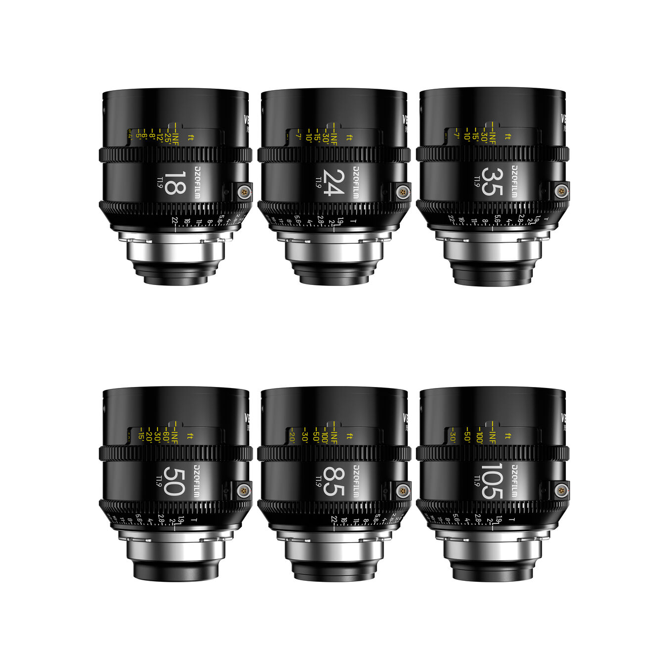 DZOFilm Vespid2 6-Lens Kit T1.9 PL mount Prime Lenses with Case (18/24/35/50/85/105mm, imperial)
